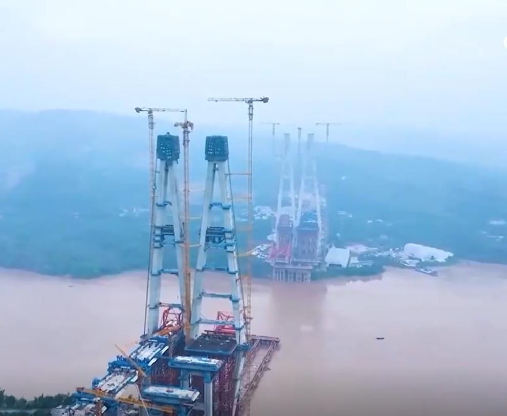 Recently, the No. 6 main tower of the Shituo Yangtze River Bridge on the Chongqing-Wanzhou High Speed Railway was successfully topped out. The Shituo Yangtze River Bridge is 1,056 meters long, with the No. 6 main tower reaching 253 meters, making it the world's tallest twin-linked main tower. The Chongqing-Wanzhou High Speed Railway spans 251 km, with a design speed of 350 km/h, and is expected to be completed and operational by 2027.