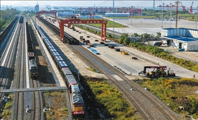 On October 23, a "Yangtze River Express" freight train loaded with corn departed from the Chengxi Port railway line's Shanggang operation area in Jiujia...
