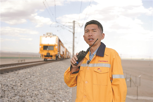 近日,喬濟源從若羌站登上了開(kāi)往依吞布拉克站的貨運列車(chē)。他專(zhuān)注地查看前方線(xiàn)路、接觸網(wǎng)和沿線(xiàn)電務(wù)設備,觀(guān)察軌道的細微變化?!拔覀冘?chē)間融合工務(wù)、電務(wù)、供電3個(gè)專(zhuān)業(yè),每月都要進(jìn)行巡檢?!彼f(shuō)。