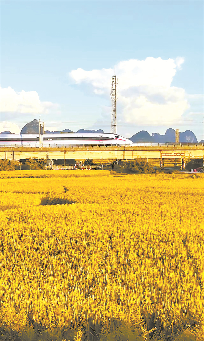 高鐵穿過(guò)稻香,訴說(shuō)著(zhù)時(shí)代脈動(dòng)與鄉土溫情。