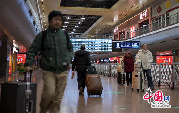 乘坐K4159次列車(chē)的乘客檢票進(jìn)站。中國網(wǎng)記者 馬曠/攝
