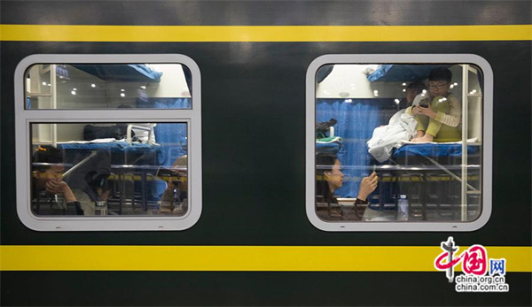 登上K4159次列車(chē)的旅客。中國網(wǎng)記者 馬曠/攝