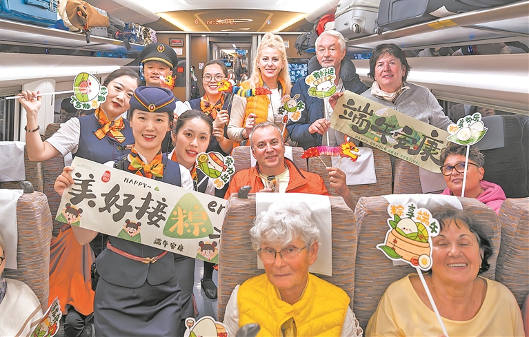 這場(chǎng)飛馳列車(chē)上的文化盛宴,讓粽葉清香與歡聲笑語(yǔ)沿著(zhù)鋼軌蔓延,傳統習俗在旅途中煥發(fā)新彩,中外旅客共同編織了屬于鐵路端午的獨特記憶——路再遠,情常在。